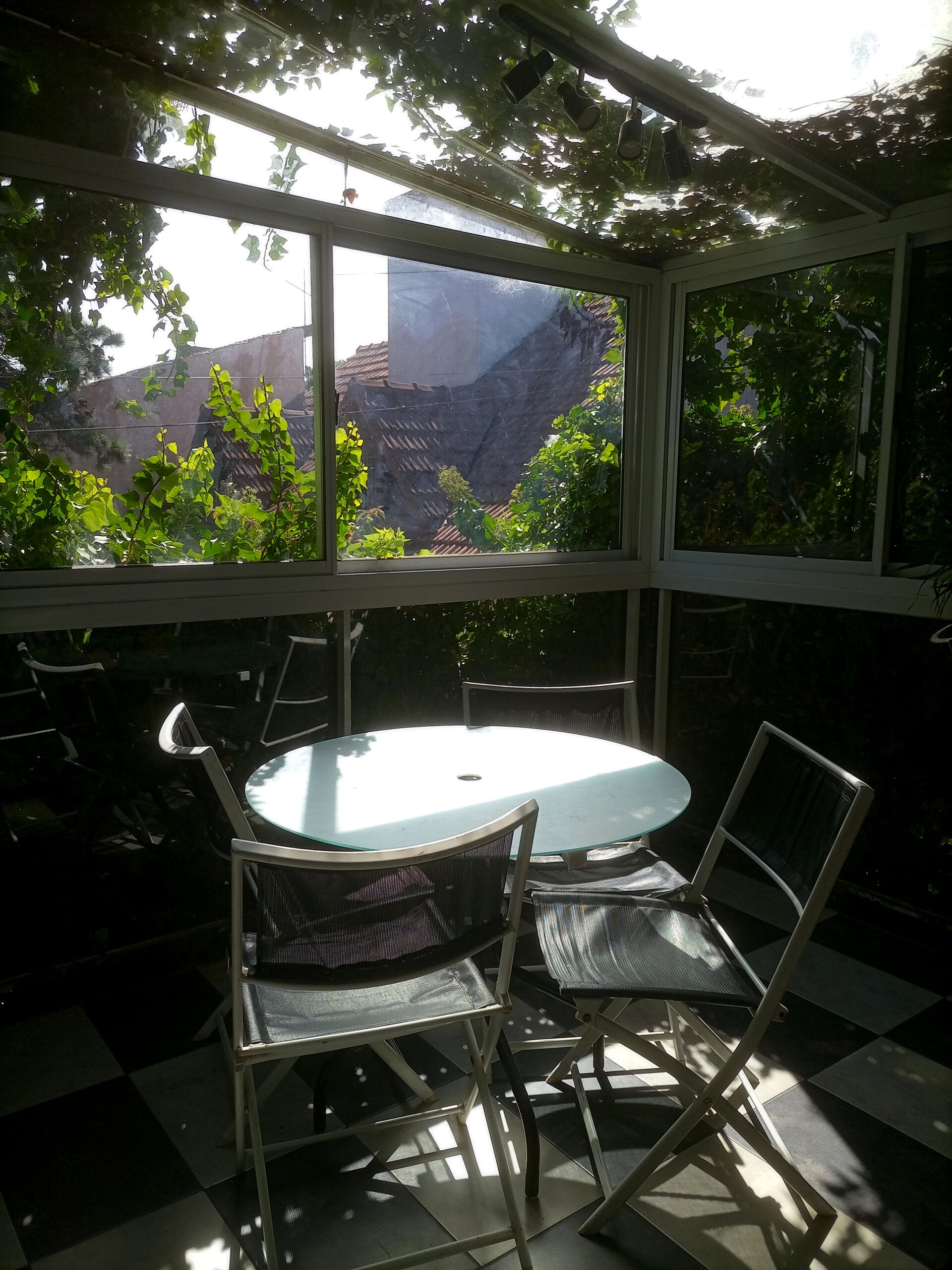 – Espacio confortable (vidriado, con mucha iluminación natural y vegetación) equipado con sillas, mesa, escritorios, butacas y todo lo necesario para trabajar cómodamente